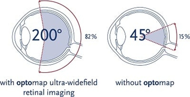 - The unique optomap ultra-widefield view helps eyecare practitioners detect early signs of retinal disease more effectively and efficiently than with traditional eye exams.